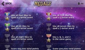Sehen Sie sich persönliche Statistiken wie Punkte, die gespielt und die besten Worte anzeigen. Stellen Sie die individuellen Herausforderungen an und versuchen Sie, alle 50 Medaillen freizuschalten.
